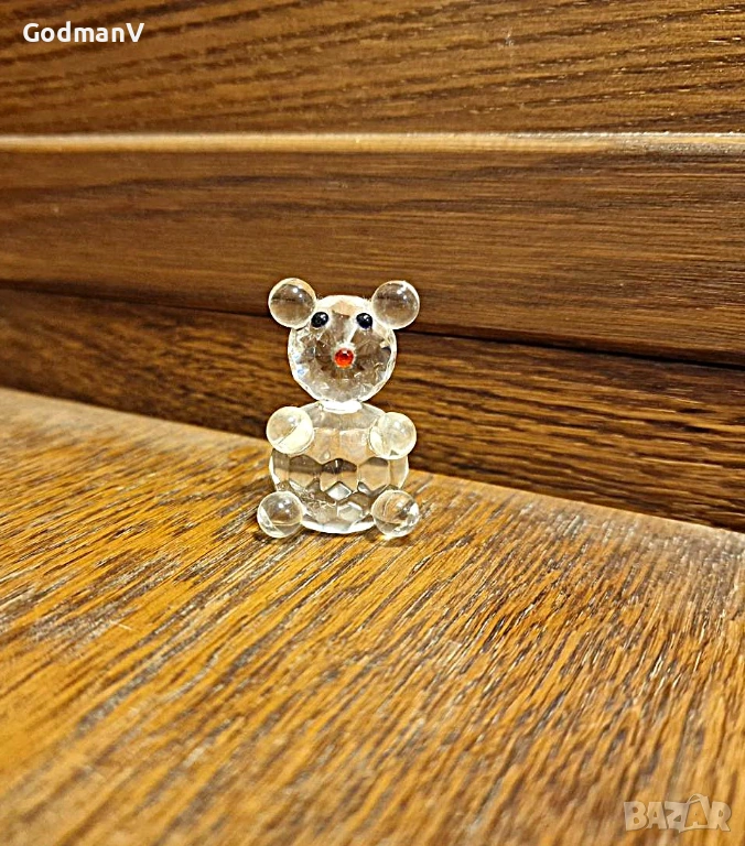 Продавам прелестна миниатюрна фигурка на мишле, изработена от висококачествено кристално стъкло. Фигурката е майсторски фасетирана, което ѝ придава блясък при всяко движение на светлината.