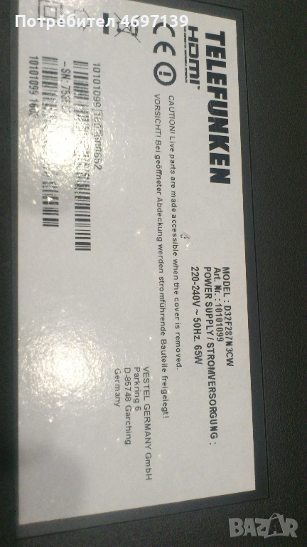 TELEFUNKEN D32F287N3CW-17MB97-17IPS62-14Y-EF11TM TAC 2LV0-2 → Обява 53067922