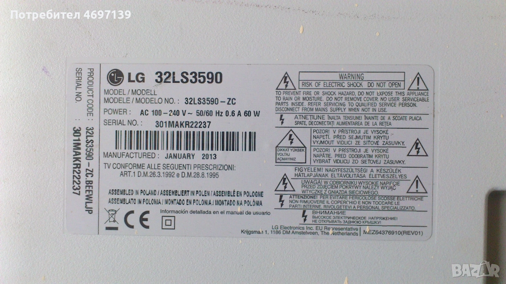 LG 32LS3590-LC21B/ EAX6491 0001/1.0/-EAX6324701/1.5/ → Обява 53067943