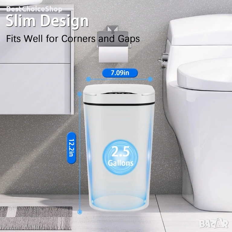 С размери 7,9" (Д) x 7,2" (Ш) x 12,2" (В) и капацитет 3 галона, този малък кош за боклук е с идеален размер за тесни пространства.