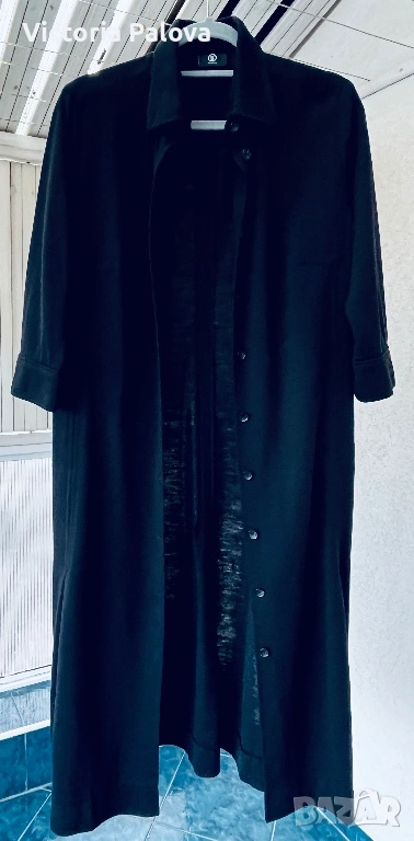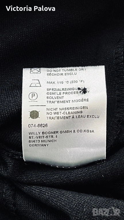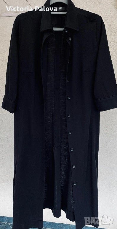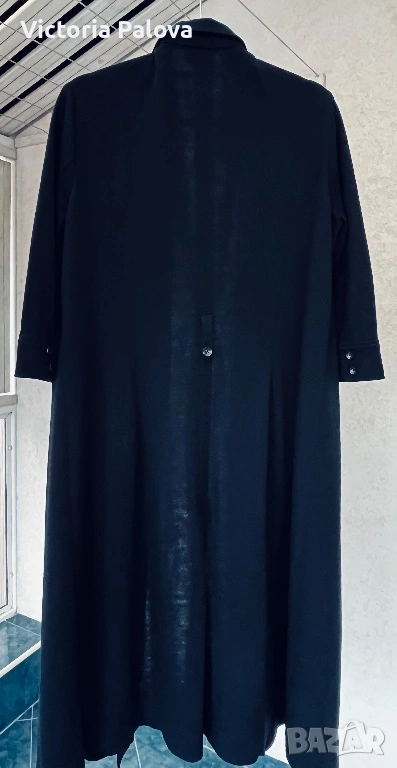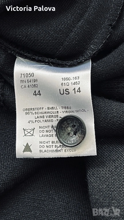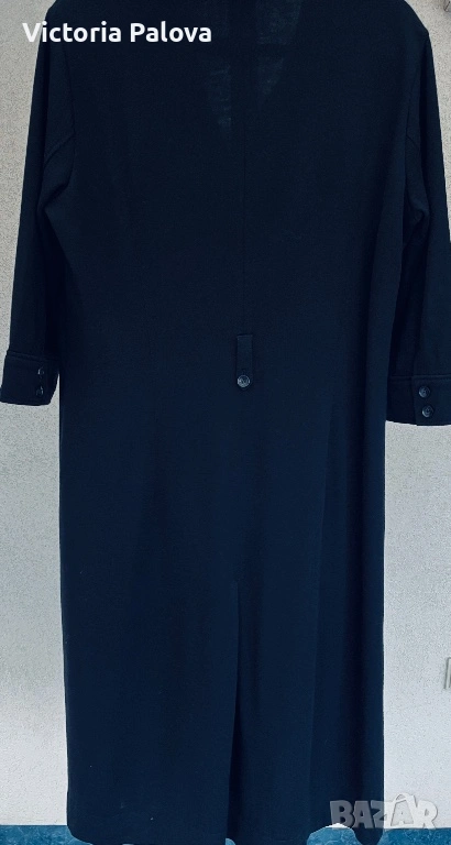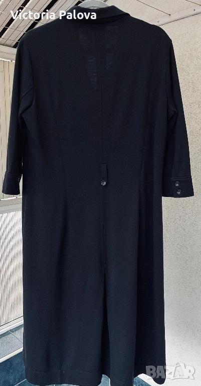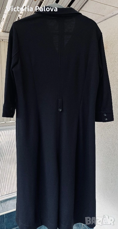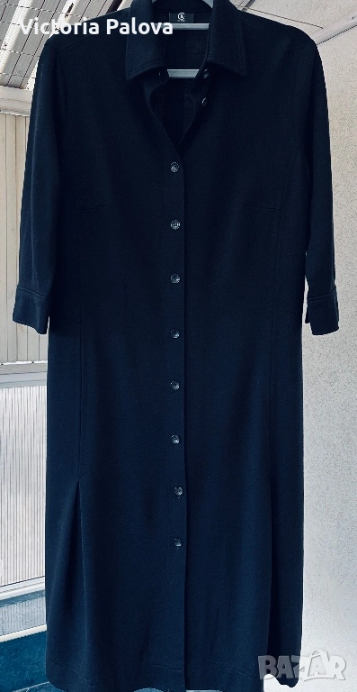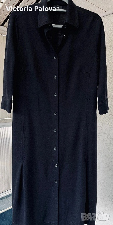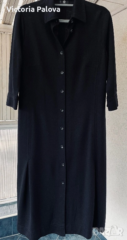 Оригинална черна рокля BOGNER - емблематична немска луксозна марка, известна с безкомпромисното си качество, изчистен дизайн и изключителни материи. Моделът е стилен и вечен, семпъл, но изтънчен, типичен за бранда с дългогодишна репутация в спортно- елегантната мода. Права линия, яка и брандирани копчета отпред - изключително елегантна интерпретация на “ little black dress “ в спортно - луксозен дух. Роклята е изработена от 96% virgin wool ( гладка и много приятна) с 4% полиамид, което осигурява мекота, комфорт и перфектно падане - плътно и красиво, оформящо елегантен издължен силует. Ръкавът е 45см - придава изискан вид, на гърба има гайка за колан , която позволява роклята да се носи както свободно, така и с колан - ако се търси допълнително акцентиране на талията. Подобни рокли BOGNER са в ценови диапазон около 800-1000 лв. Рамо - 46см, ГО - 60см, талия - 54см, ханш - 64см, дължина - 115см, ръкав - 45см.