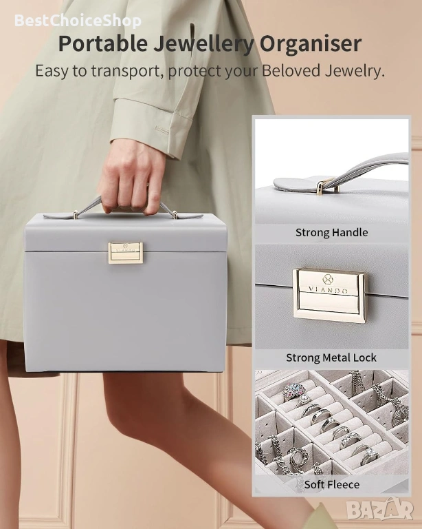 ПРЕНОСИМА И ЗДРАВА - Кутията за бижута има здрава дръжка и стабилно заключване.