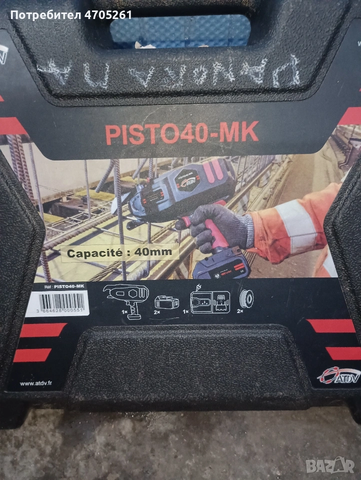 adtv pisto 40 акумулаторнаъ машина за връзване на арматура, внос от чужбина продава се това което е на снимките