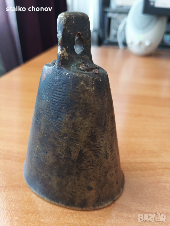 Стар чан 6,5 см. здрав без заварки , хубав звън и патина ,състояние видно от снимките.