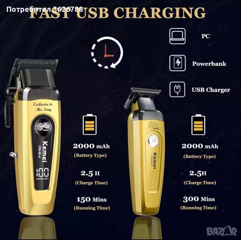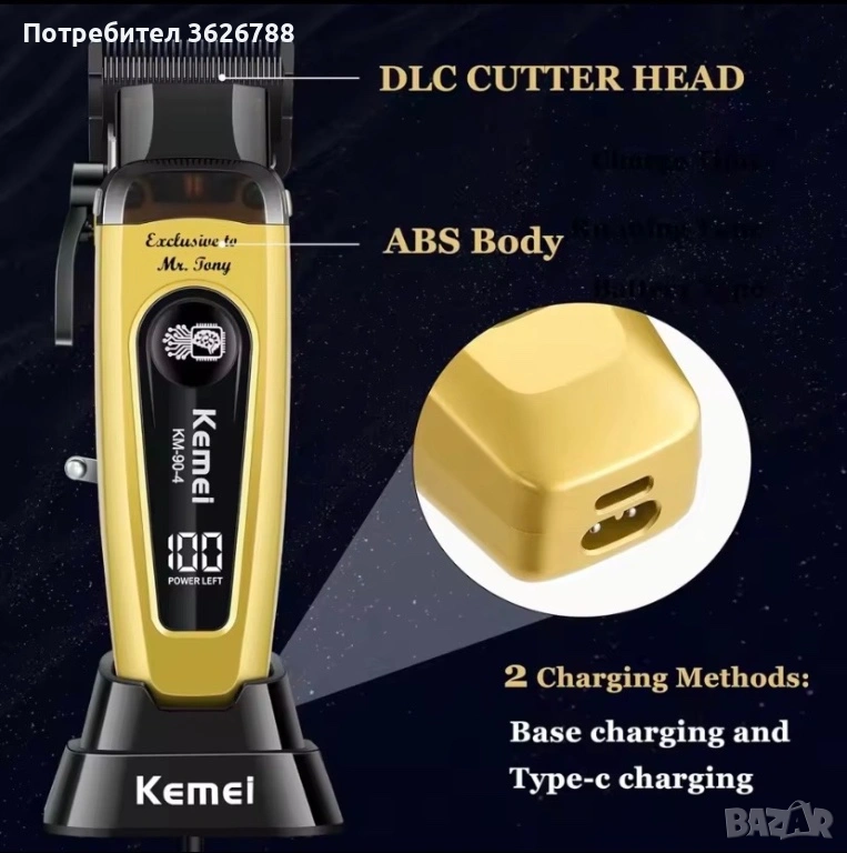 Бръснарските машинки разполагат с два иновативни порта за зареждане в долната част на корпуса: единият е за зарядната стойка, а другият – стандартен Type-C конектор. Независимо дали използвате зарядната стойка у дома или Type-C кабел в движение, можете да зареждате лесно и удобно.kemei T 389 об. 7500