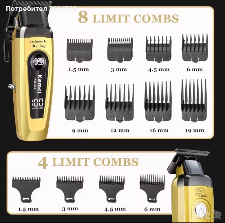 Този безжичен комплект за мъжка грижа включва машинка за подстригване KEMEI 90-4, тример KEMEI 90-5 с Т-образно острие за мъже, 2 зарядни кабела, 2 зарядни стойки, 8+4 ограничителни гребена и още аксесоари. Независимо дали го използвате у дома или във фризьорски салон, той лесно покрива всички професионални нужди за подстригване.