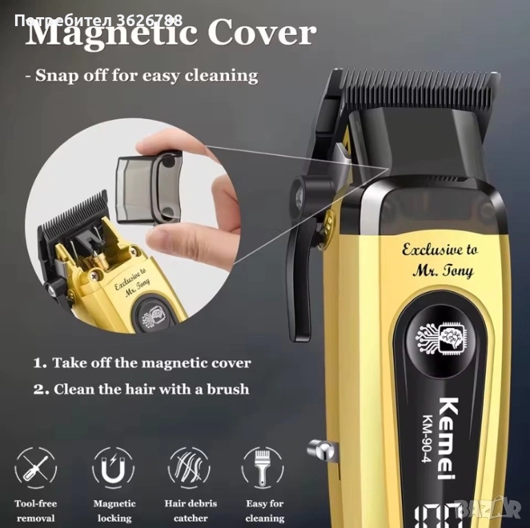 KM-904 Ултра-високоскоростна електрическа машинка за подстригване, за професионална употреба в фризьорски салони, дълготрайна батерия без засядане на косата, мощен мотор с тихо острие за подстригване. Професионални машини за подстригване и комплекти за оформяне: