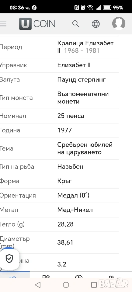 Монета 25 пенса Кралица Виктория 1977 година.