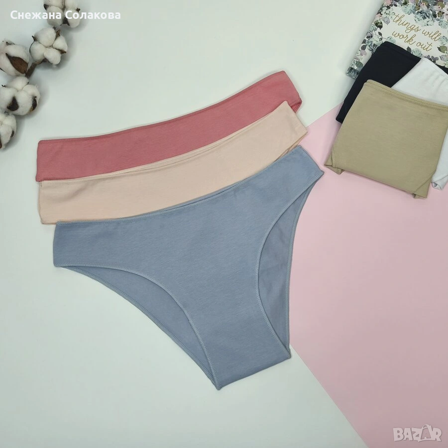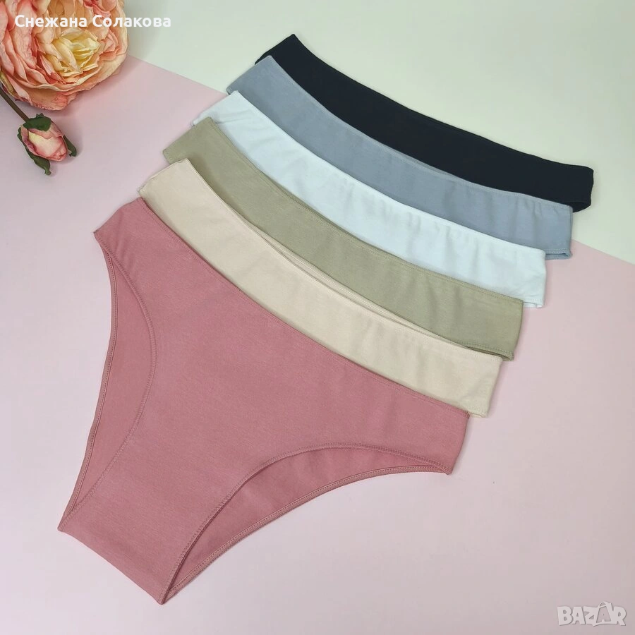 Нежен и удобен комплект от 6 памучни бикини с оверлог шев, изработени от мека и еластична материя → Обява 53069100