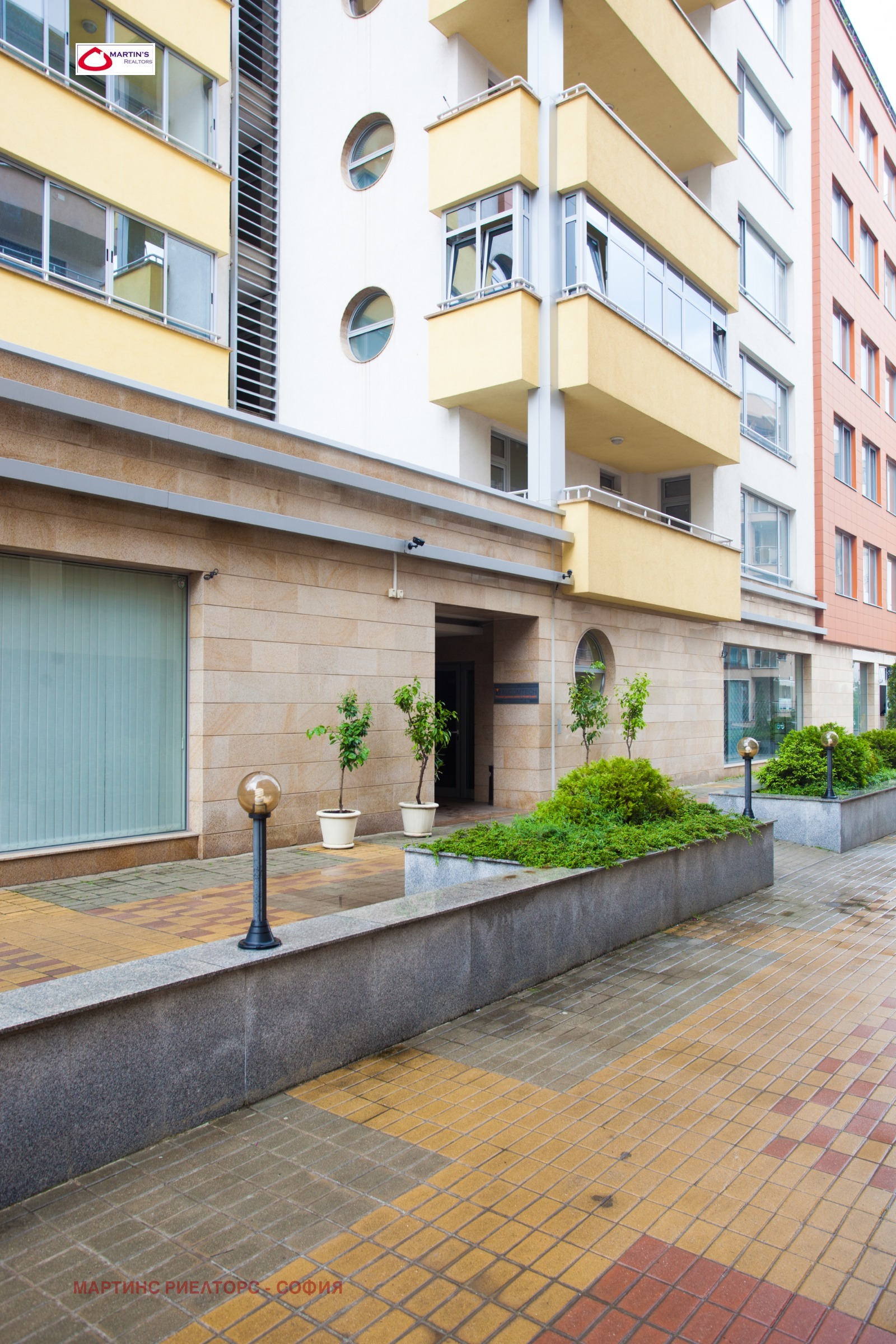 Имотът е със статут на магазин и застроена площ по документи от 143м2. Представлява 2 отделни по нотариален акт, но обединени по ползване като фитнес зала помещения, с изцяло със югозападно изложение. Поради денивелацията на терена и застрояването, входът на магазина е на кота, а спрямо бул. Черни връх е на височина 6ет. Ремонтът е извършен през 2012г., съобразно техническите изисквания и нуждите на една фитнес зала. Изпълнена е допълнителна шумо и топлоизолация. Обособени са отделни санитарни помещения и душове за мъже и жени. Изградена е вентилационна система и допълнително подсигуряване с климатици. Чертеж от изпълнения проект за ОВИ е публикуван в обявата. Достъпът до сградата и помещението се извършва през главния вход на комплекса от към ул. Свети Седмочисленици или от бул. Черни връх. Поради денивелацията на терена и застрояването, входът на магазина е на партерен етаж, а спрямо бул. Черни връх е на височина 4 ет.