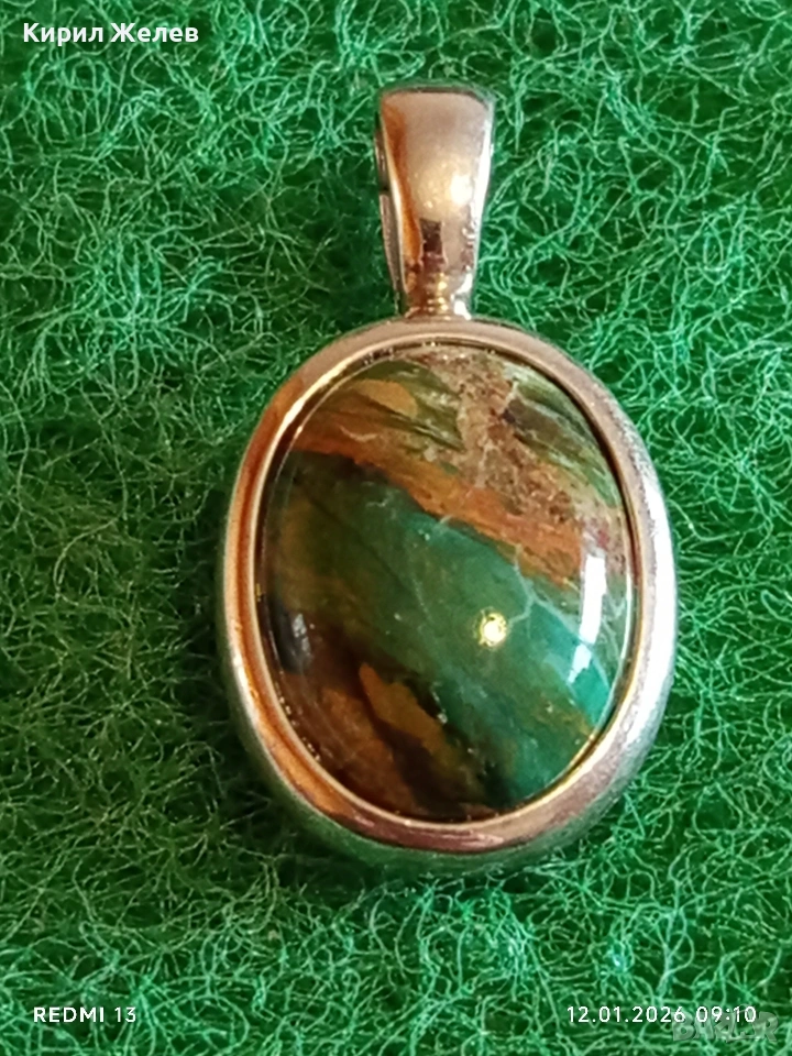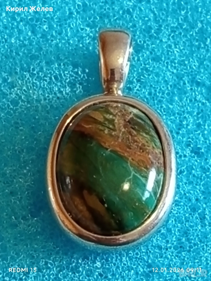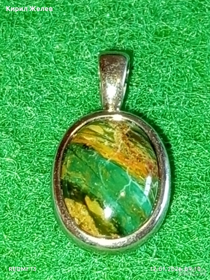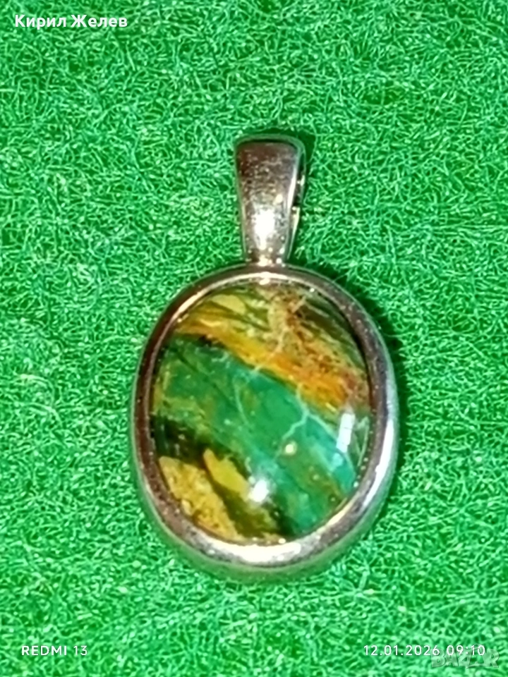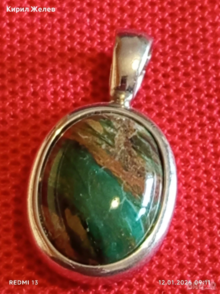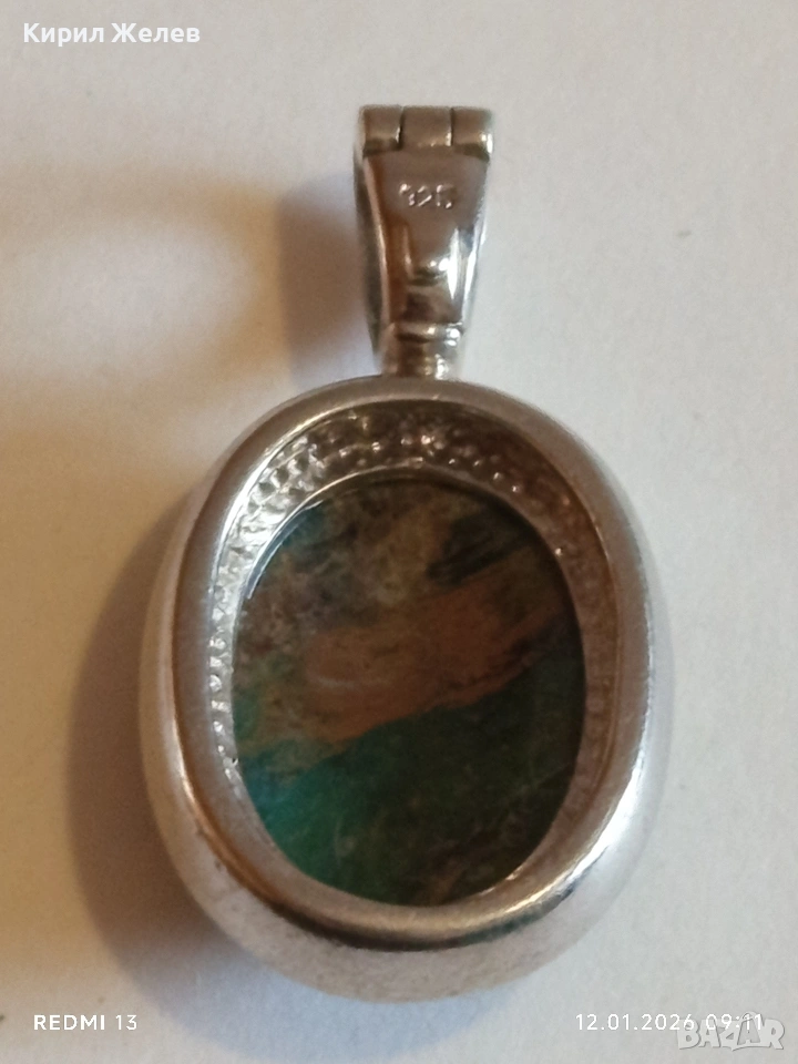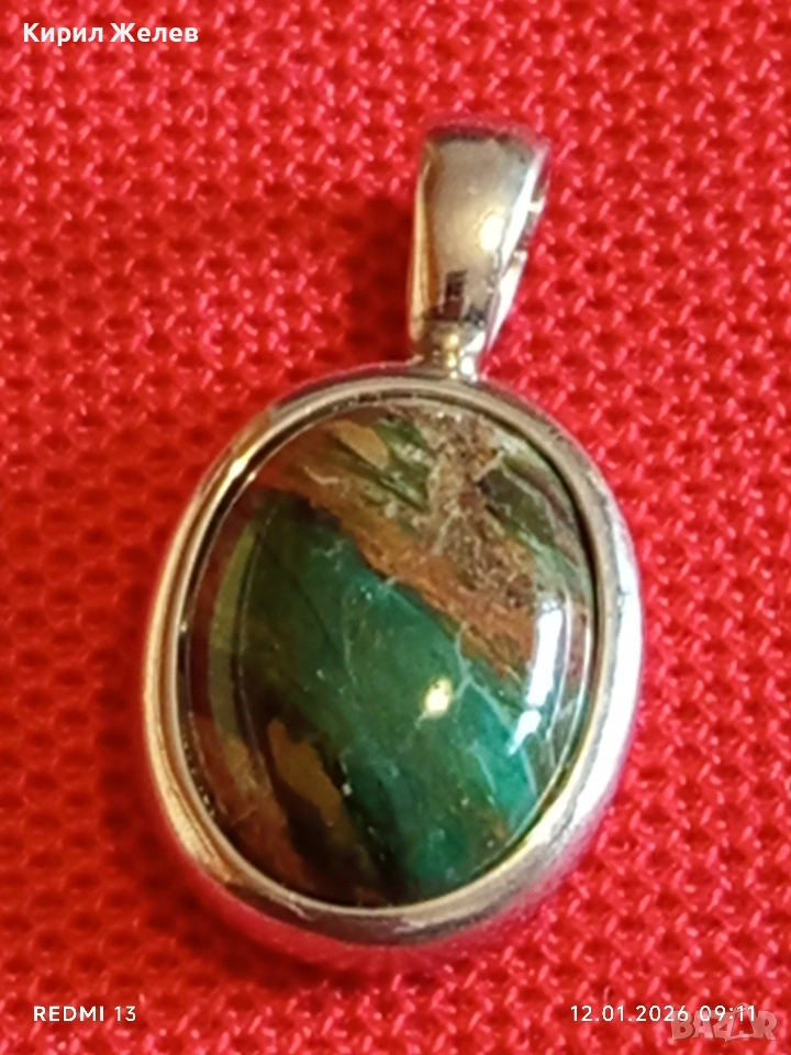 Сребърна висулка с инкростация на АЗУРИТ и МАЛАХИТ елегантно Арт бижу 52610