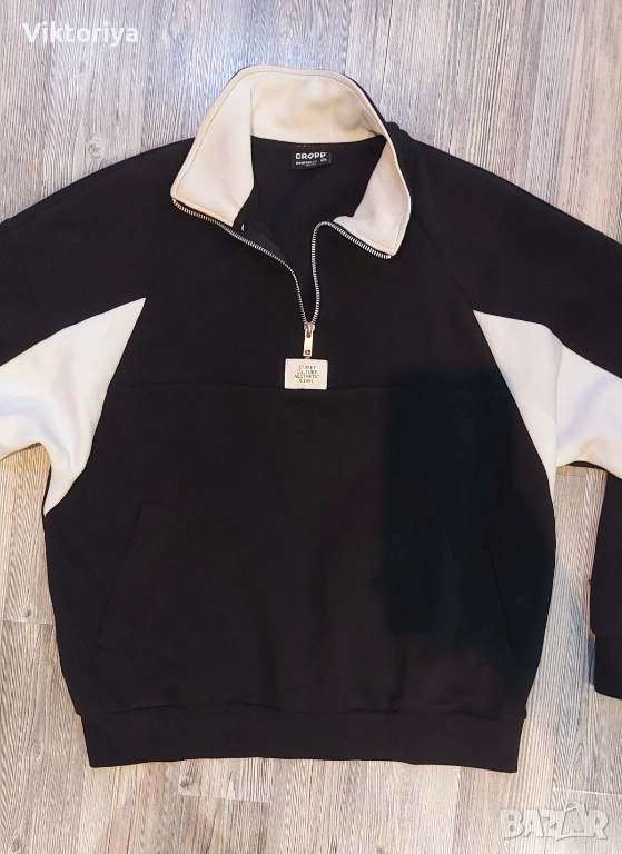 Мъжки суичер кроп в черен цвят. Нов. Купен от магазин Cropp, съвсем нов е. Оказа се малък. Само е пробван.
