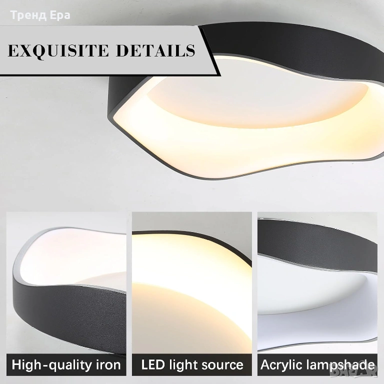 Това модерно осветително тяло за таван се отличава с опростен дизайн и тънък профил, което го прави подходящо за всички стилове на декорация и видове тавани.