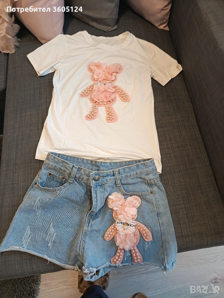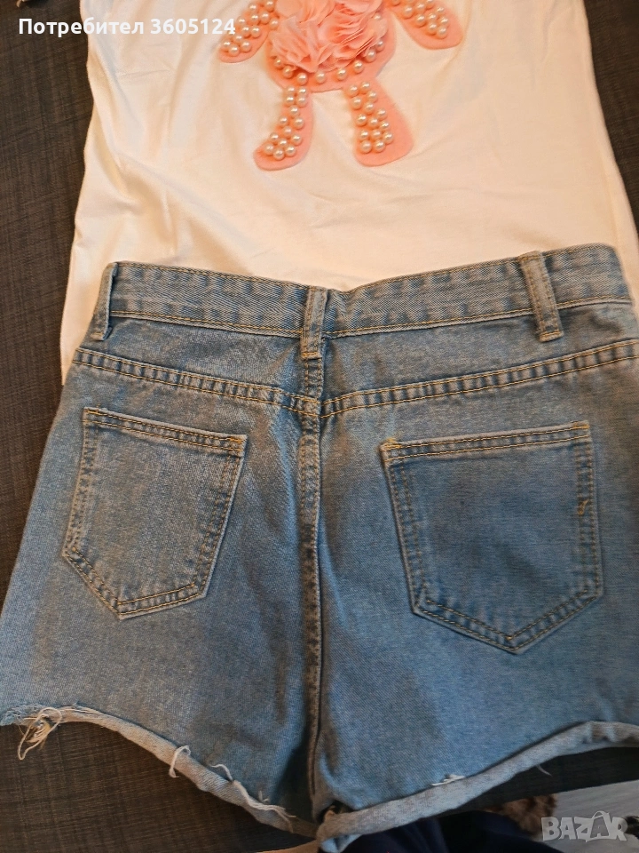 дамски комплект тениска и дънкови панталонки размер L → Обява 53069326