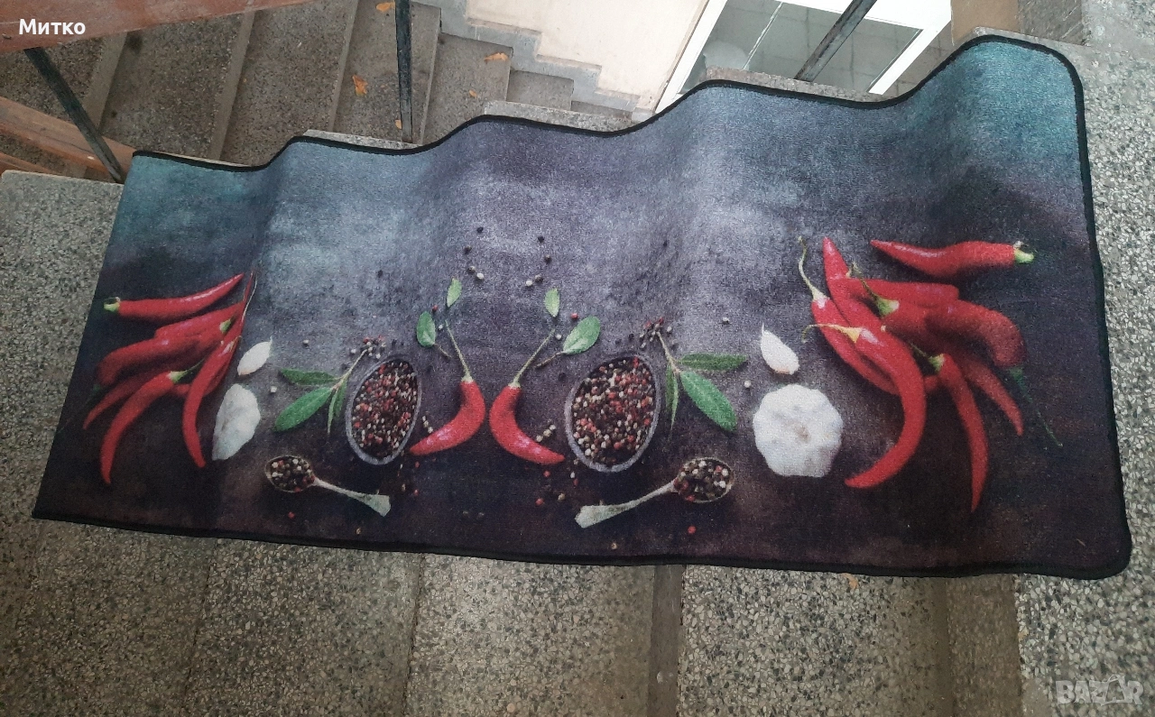 Много запазени мокетни пътеки от полиамид.Размери 180см.на 65см.Налични 3броя тези с лютите чушки са две еднакви..Цената е 15 лева за 1 брой пътека.Перящи са на 30 градуса.