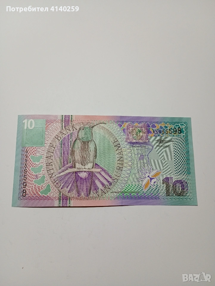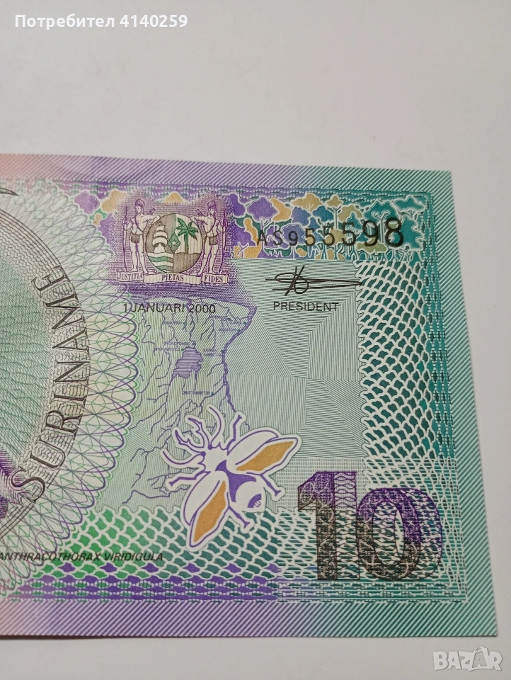 СУРИНАМИ БАНКНОТА 10 ГУЛДЕНА 2000 Г → Обява 53069481