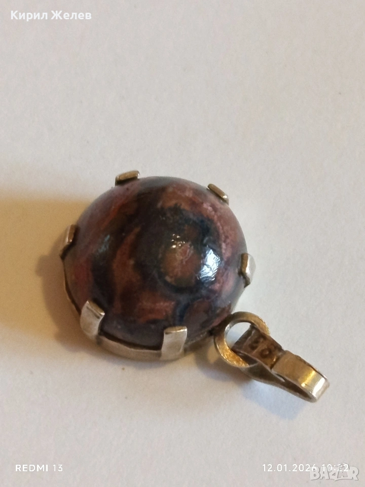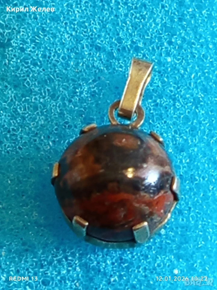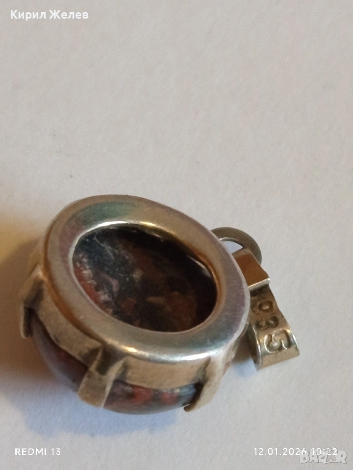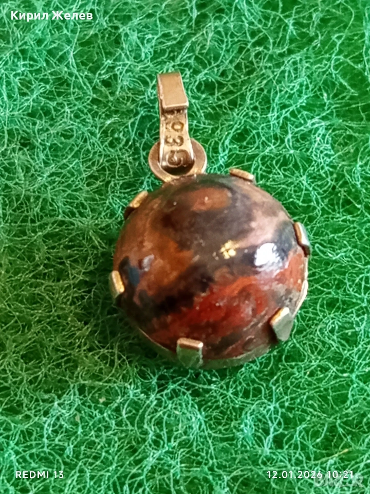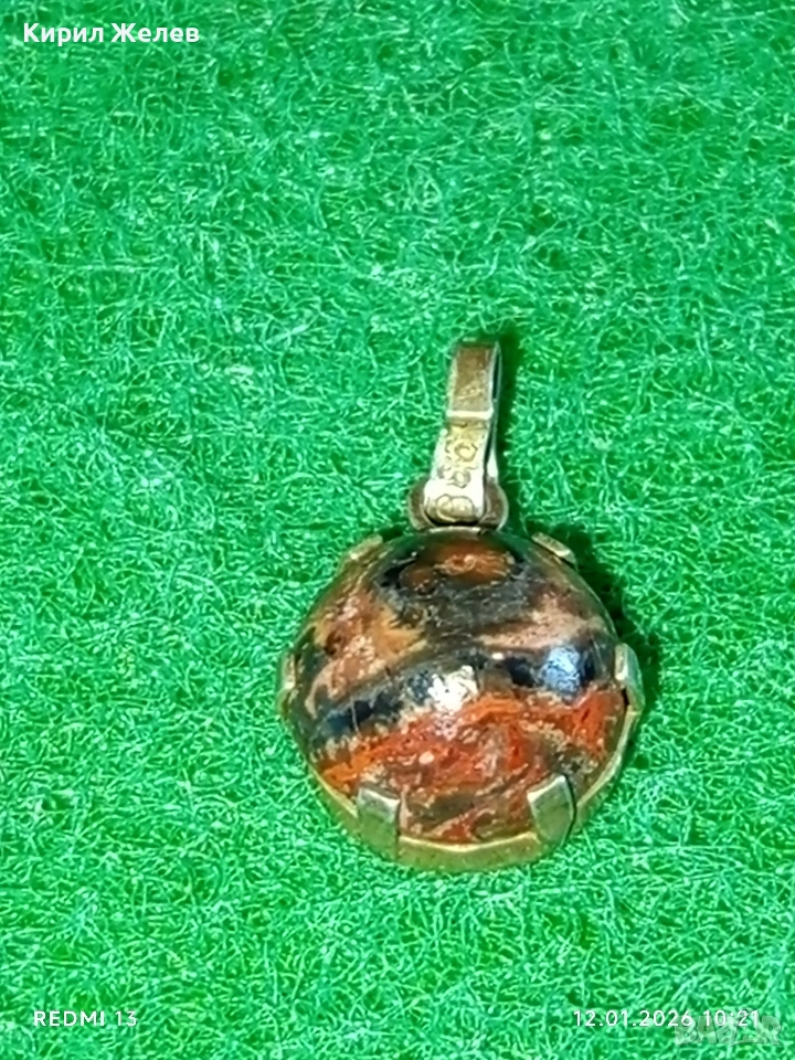 Уникален рядък сребърен медальон с Яспис и Оникс ювелирна изработка много красив 52580