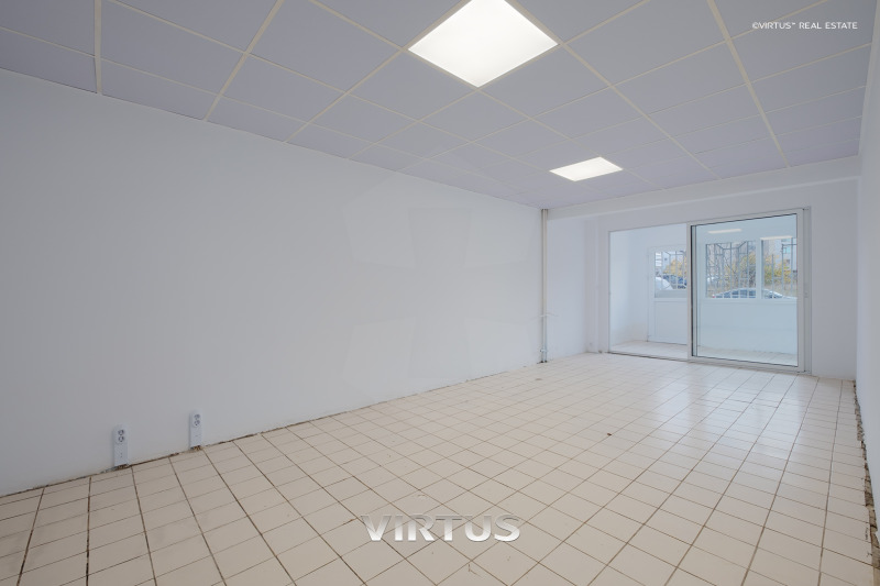 ВИРТУС предлага просторен и светъл имот със статут на магазин. Застроена площ: 98 кв.м. Състои се от: антре, три отделни помещения, коридор и две бани с тоалетни.