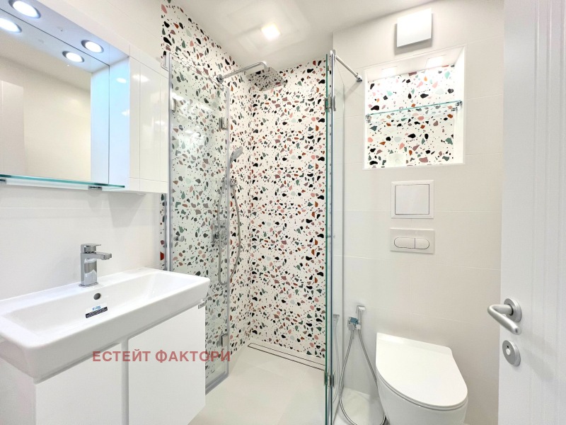 Апартаментът е с функционално разпределение и включва просторна дневна с кухненски бокс, спалня със собствена баня с тоалетна и гардеробна, още една спалня, която ще бъде обзаведена по желание на бъдещите наематели, баня с тоалетна, мокро помещение и два страхотни самостоятелни двора към дневната и към спалните, подходящи за отдих и озеленяване. Изложенията са югоизток и северозапад, което осигурява естествена светлина през целия ден.