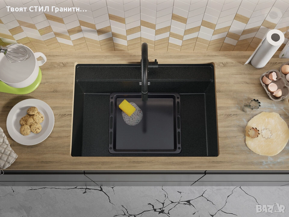 • За вграждане (монтирана под плот) гранитна кухненска мивка за шкафове 80 см