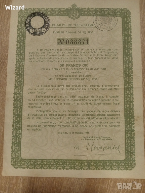 Облигация Югославия 1933 → Обява 53070266