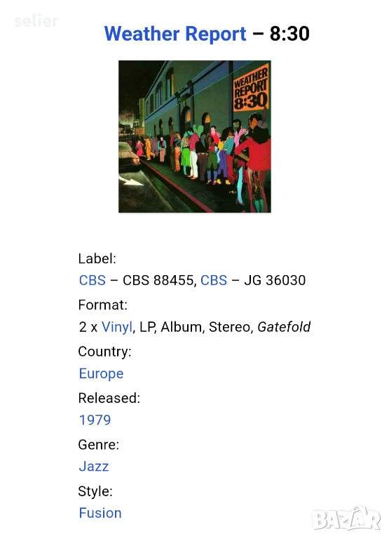 Weather Report ‎– 8:30 Двойна плоча-GATEFOLD Издание 🇳🇱 HOLLAND 1979г Стил:JAZZ , FUSION Състояние, снимка 1 - Грамофонни плочи - 53070391 Weather Report ‎– 8:30 Двойна плоча-GATEFOLD Издание 🇳🇱 HOLLAND 1979г Стил:JAZZ , FUSION Състояние, снимка 2 - Грамофонни плочи - 53070391 Weather Report ‎– 8:30 Двойна плоча-GATEFOLD Издание 🇳🇱 HOLLAND 1979г Стил:JAZZ , FUSION Състояние, снимка 3 - Грамофонни плочи - 53070391 Weather Report ‎– 8:30 Двойна плоча-GATEFOLD Издание 🇳🇱 HOLLAND 1979г Стил:JAZZ , FUSION Състояние, снимка 4 - Грамофонни плочи - 53070391 Weather Report ‎– 8:30 Двойна плоча-GATEFOLD Издание 🇳🇱 HOLLAND 1979г Стил:JAZZ , FUSION Състояние, снимка 5 - Грамофонни плочи - 53070391 Weather Report ‎– 8:30 Двойна плоча-GATEFOLD Издание 🇳🇱 HOLLAND 1979г Стил:JAZZ , FUSION Състояние, снимка 6 - Грамофонни плочи - 53070391 Weather Report ‎– 8:30 Двойна плоча-GATEFOLD Издание 🇳🇱 HOLLAND 1979г Стил:JAZZ , FUSION Състояние, снимка 7 - Грамофонни плочи - 53070391 Weather Report ‎– 8:30 Двойна плоча-GATEFOLD Издание 🇳🇱 HOLLAND 1979г Стил:JAZZ , FUSION Състояние, снимка 8 - Грамофонни плочи - 53070391 Weather Report ‎– 8:30 Двойна плоча-GATEFOLD Издание 🇳🇱 HOLLAND 1979г Стил:JAZZ , FUSION Състояние, снимка 9 - Грамофонни плочи - 53070391 Weather Report ‎– 8:30 Двойна плоча-GATEFOLD Издание 🇳🇱 HOLLAND 1979г Стил:JAZZ , FUSION Състояние, снимка 10 - Грамофонни плочи - 53070391 Weather Report ‎– 8:30 Двойна плоча-GATEFOLD Издание 🇳🇱 HOLLAND 1979г Стил:JAZZ , FUSION Състояние, снимка 11 - Грамофонни плочи - 53070391 Weather Report ‎– 8:30 Двойна плоча-GATEFOLD Издание 🇳🇱 HOLLAND 1979г Стил:JAZZ , FUSION Състояние, снимка 12 - Грамофонни плочи - 53070391 1/12