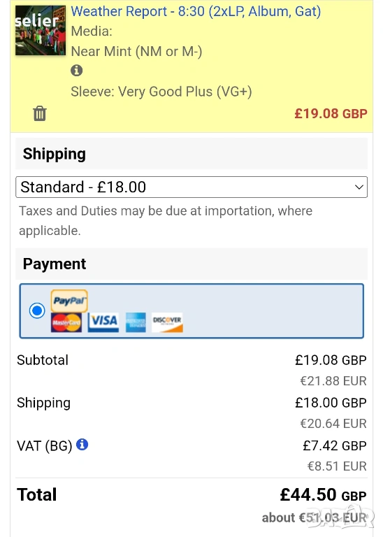 Състояние на обложката:VG+