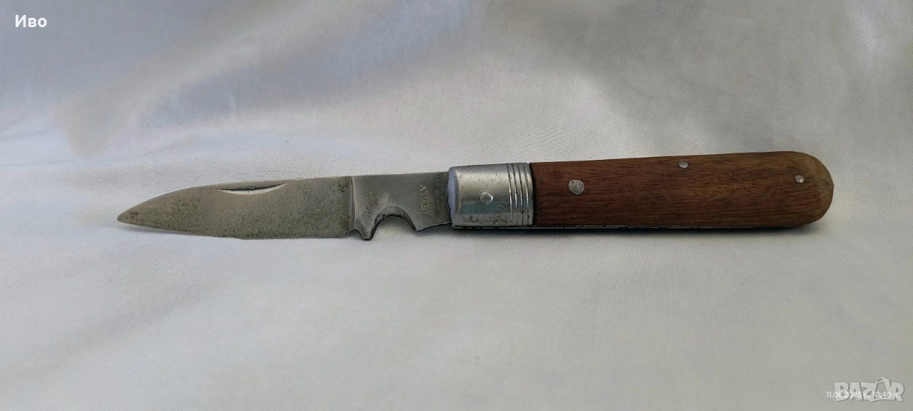 Старо военно електричарско ножче в топ състояние,без луфтове с фрезенк за обелване на кабели. На едната страна на острието има щемпел Italy. масивно и много здраво от хубава резлива стомана.