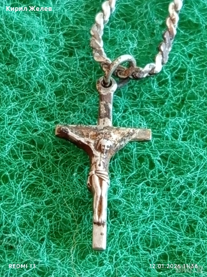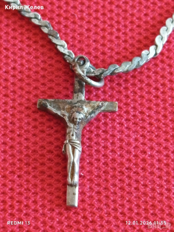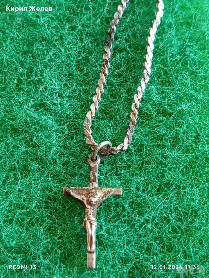 Сребърна верижка плетка тип Змийска кожа с кръст разпятие Христово 52771