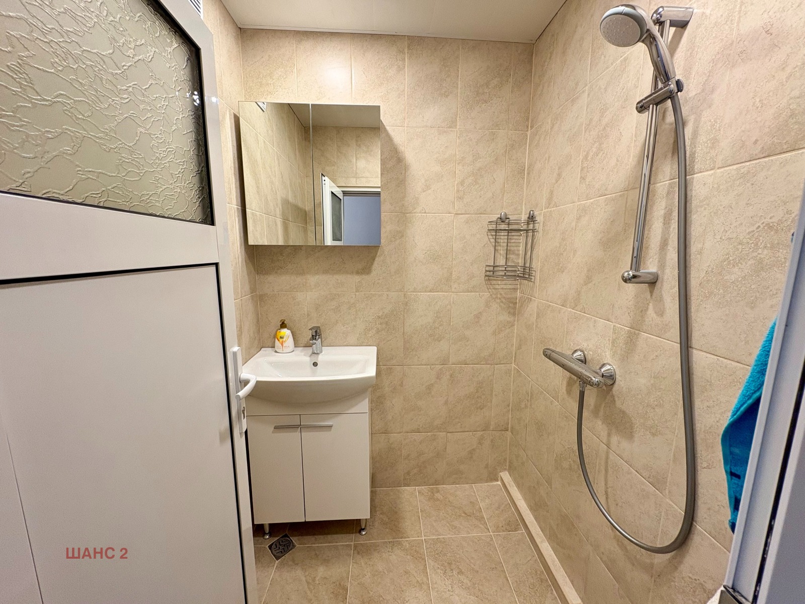 Пред кухнята и хола има голяма остъклена тераса, която добавя комфорт и допълнително пространство. Апартаментът се предлага напълно обзаведен и оборудван с всичко необходимо за ежедневен живот. Подходящ е както за сам човек, така и за семейство. Готов за нанасяне веднага. В цената са включени входните такси.