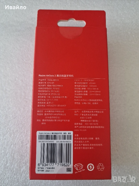 • 2бр. Безжични слушалки Xiaomi AirDots 2