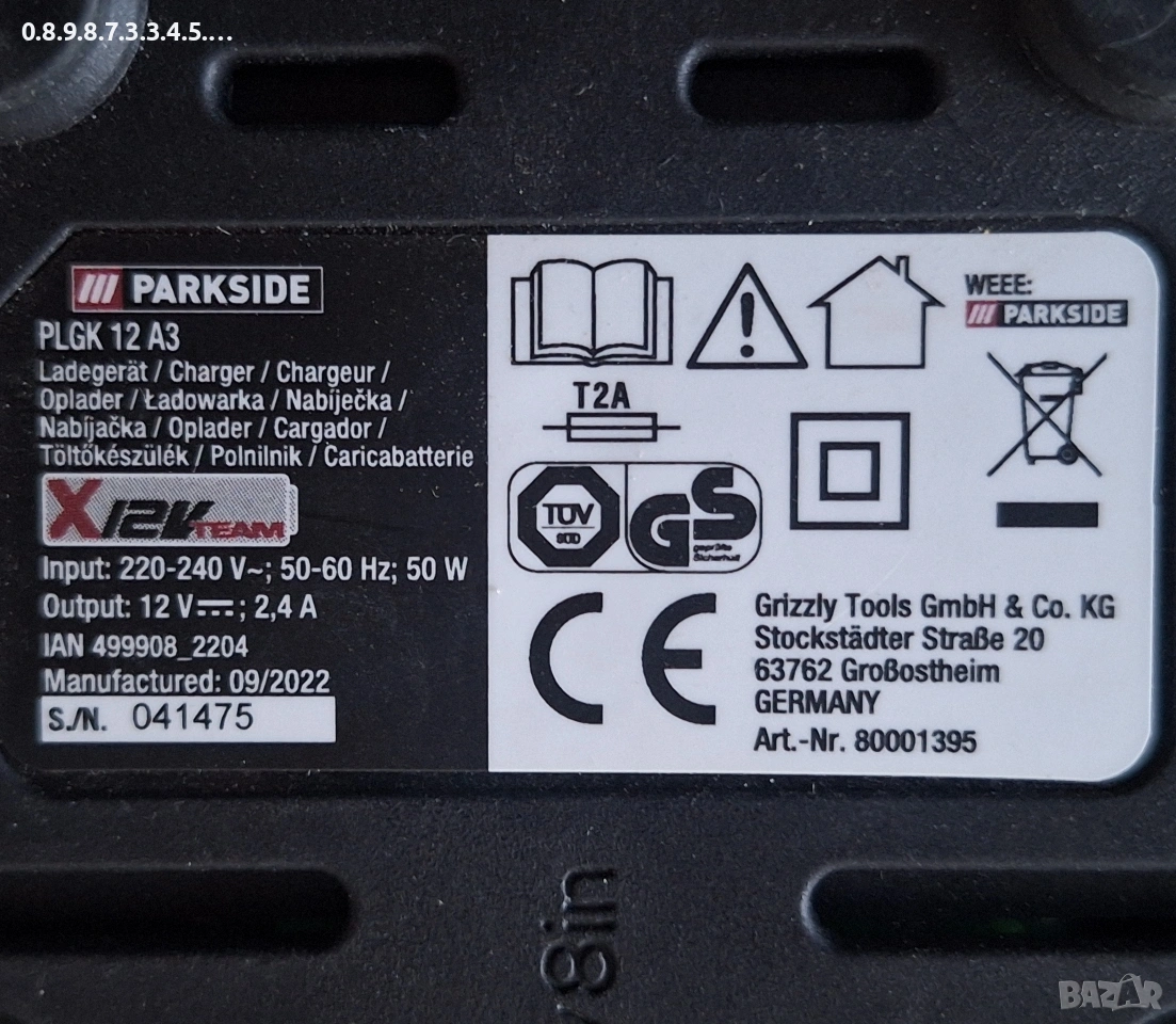 Зарядно устройство 12В 2.0А и батерия 12В 2А на Парксайд