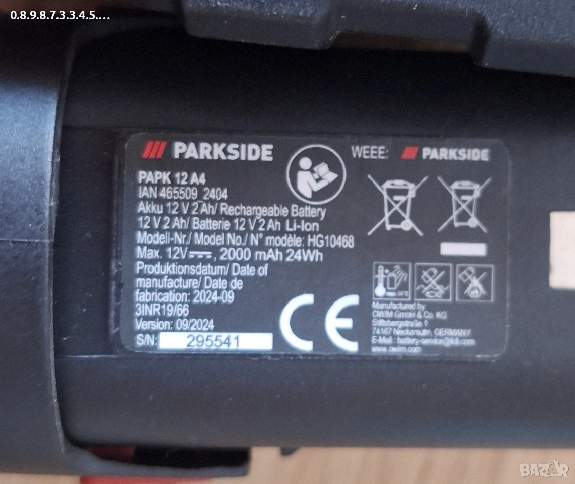 батерия на Парксайд 12В PAPK 12 2.0 A4 и Зарядно устройство PLGK 12V 2.0 А3 Парксайд → Обява 53071365