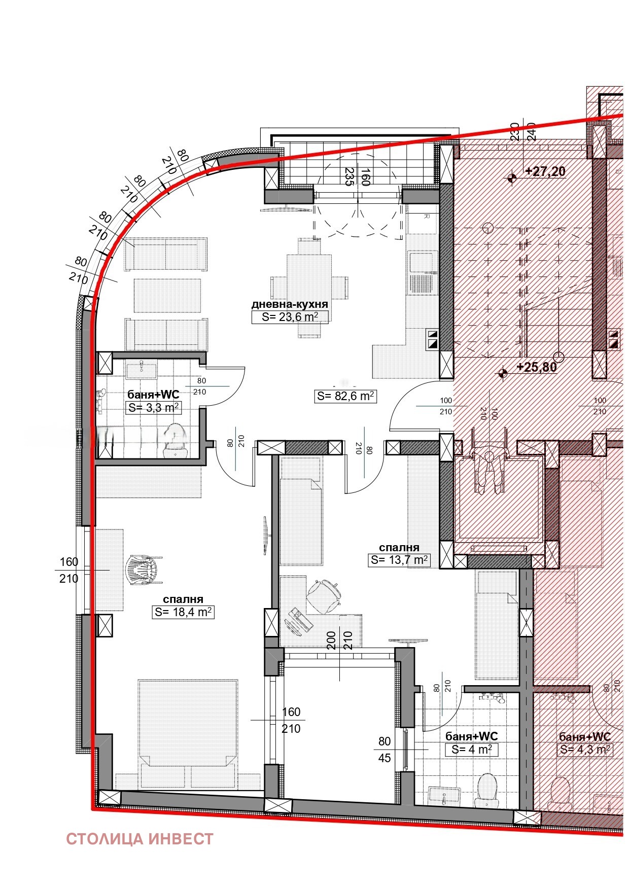 Агенция Столица Инвест представя на Вашето внимание нов, висококачествен жилищен проект в една от най-перспективните зони на град Русе широкия център. Предлагаме Ви тристаен апартамент изключително функционално жилище с площ от 114 кв.м. с общите части, разположено на трети архитектурен етаж в модерна шестетажна тухлена сграда. Разпределението на имота е изключително практично и включва светла дневна с кухненска част, две уютни спални, една от които със собствена баня и тоалетна, още една баня с тоалетна, както и балкон, който осигурява изобилие от естествена светлина. Към апартамента принадлежи и просторна изба от 12,80 кв.м. и 20,12 кв.м. от прилежащия терен. Сградата ще разполага с последно поколение асансьор, видео наблюдение и строг контрол на достъпа, гарантиращи Вашето спокойствие. За пълно удобство на бъдещите собственици, предлагаме и възможност за закупуване на самостоятелен гараж на нивото на улицата. Поставете основите на Вашето бъдеще в град Русе с професионалното съдействие на Столица Инвест!