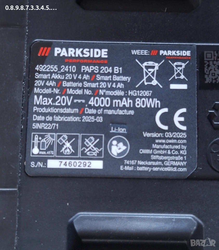 Смарт батерия на Парксайд 20В 4А PABS 20li 204 B1 , снимка 1 - Винтоверти - 53071456 Смарт батерия на Парксайд 20В 4А PABS 20li 204 B1 , снимка 2 - Винтоверти - 53071456 Смарт батерия на Парксайд 20В 4А PABS 20li 204 B1 , снимка 3 - Винтоверти - 53071456 Смарт батерия на Парксайд 20В 4А PABS 20li 204 B1 , снимка 4 - Винтоверти - 53071456 Смарт батерия на Парксайд 20В 4А PABS 20li 204 B1 , снимка 5 - Винтоверти - 53071456 Смарт батерия на Парксайд 20В 4А PABS 20li 204 B1 , снимка 6 - Винтоверти - 53071456 1/6