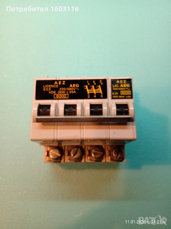 АВТОМАТИЧЕН ПРЕДПАЗИТЕЛ  3Р + 1Р  25А + 6А, снимка 1 - Друга електроника - 53071763  АВТОМАТИЧЕН ПРЕДПАЗИТЕЛ  3Р + 1Р  25А + 6А, снимка 2 - Друга електроника - 53071763  АВТОМАТИЧЕН ПРЕДПАЗИТЕЛ  3Р + 1Р  25А + 6А, снимка 3 - Друга електроника - 53071763 1/3