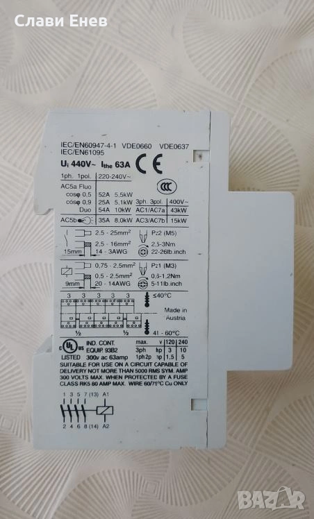 Напрежение на бобината: 230V