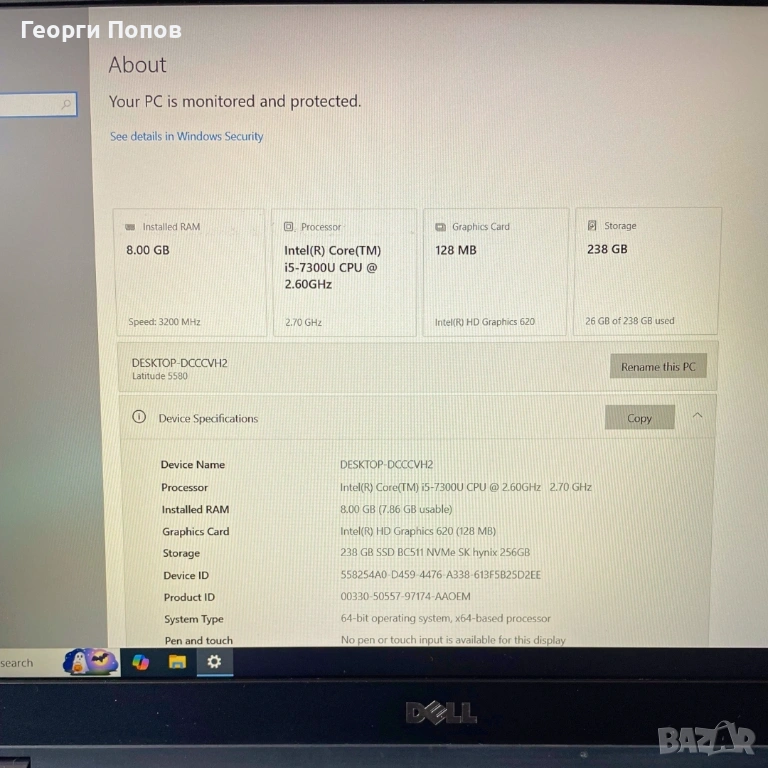 Батерия в добро състояние. Бърз M.2 NVMe PCle SSD диск, за светкавичен обмен на данни.
