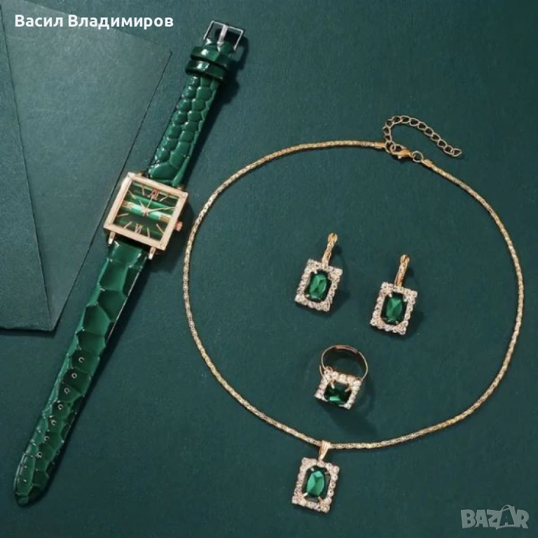 Елегантен комплект часовник и бижута с зелени кристали и златист корпус, снимка 1 - Бижутерийни комплекти - 53071960 Елегантен комплект часовник и бижута с зелени кристали и златист корпус, снимка 2 - Бижутерийни комплекти - 53071960 Елегантен комплект часовник и бижута с зелени кристали и златист корпус, снимка 3 - Бижутерийни комплекти - 53071960 Елегантен комплект часовник и бижута с зелени кристали и златист корпус, снимка 4 - Бижутерийни комплекти - 53071960 Елегантен комплект часовник и бижута с зелени кристали и златист корпус, снимка 5 - Бижутерийни комплекти - 53071960 1/5