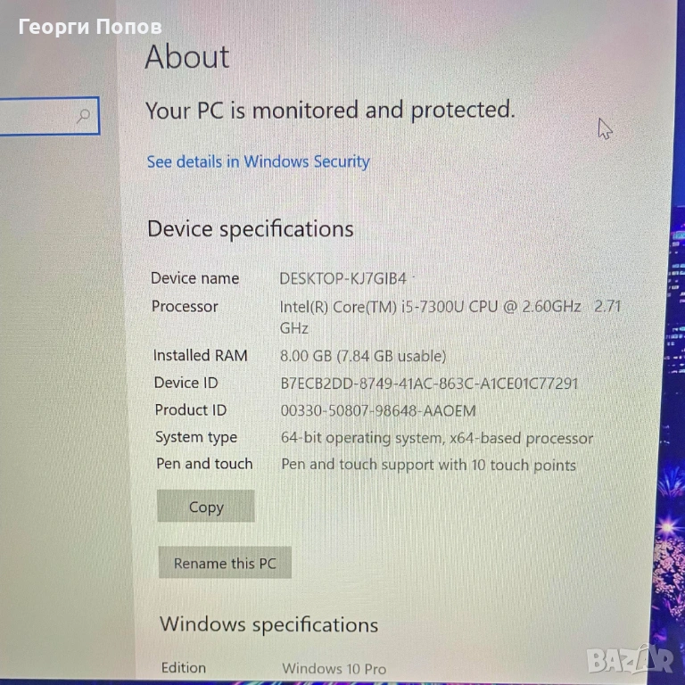 ОС: Windows 10 PRO - Инсталиран и активиран лиценз
