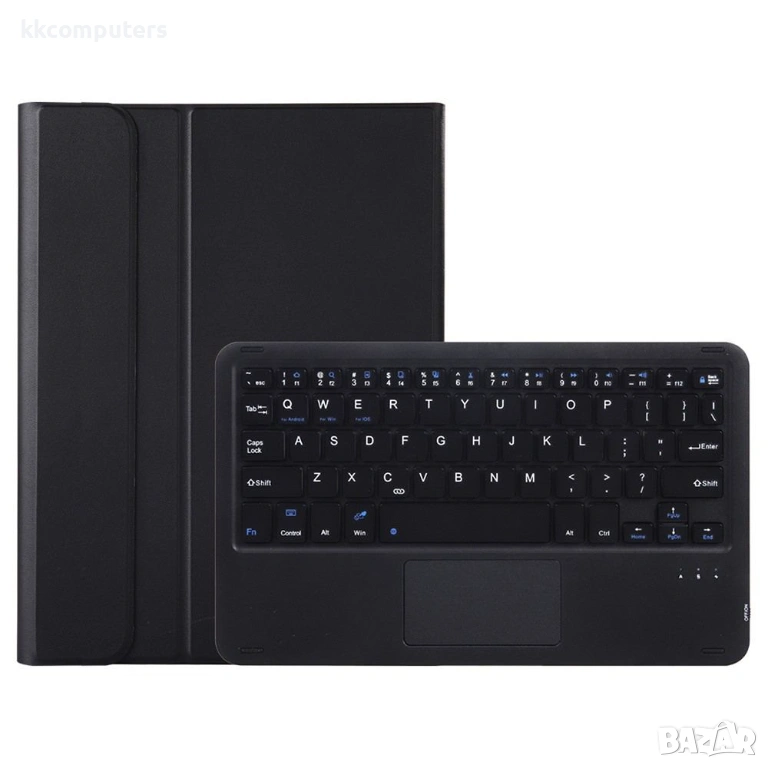2-в-1 дизайн: клавиатура с тъчпад и кожен калъф: Обединява пълноразмерна Bluetooth 3.0 клавиатура с вграден тъчпад и здрава комбинирана PU кожа + TPU защита в едно слято и практично цяло.