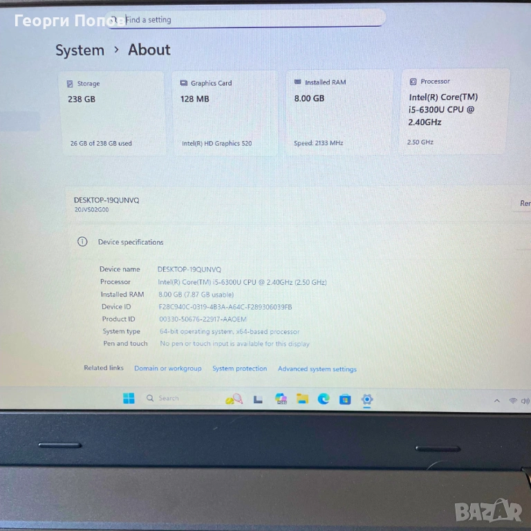 Лаптопът е в страхотно визуално състояние и технически изряден. Преинсталиран с оригинален и лицензиран Windows 11 PRO, готов за работа.