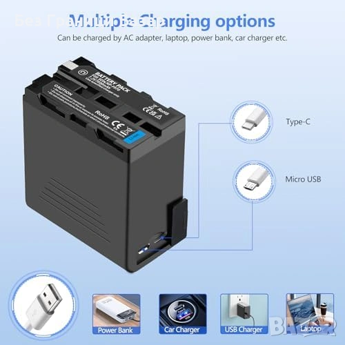 Съвместима с NP-F970, NP-F980, NP-F960, NP-F950, NP-F930, NP-F770, NP-F750