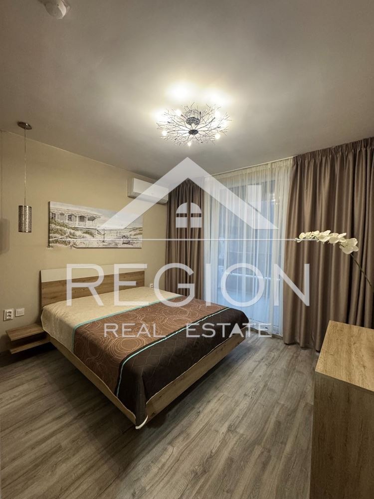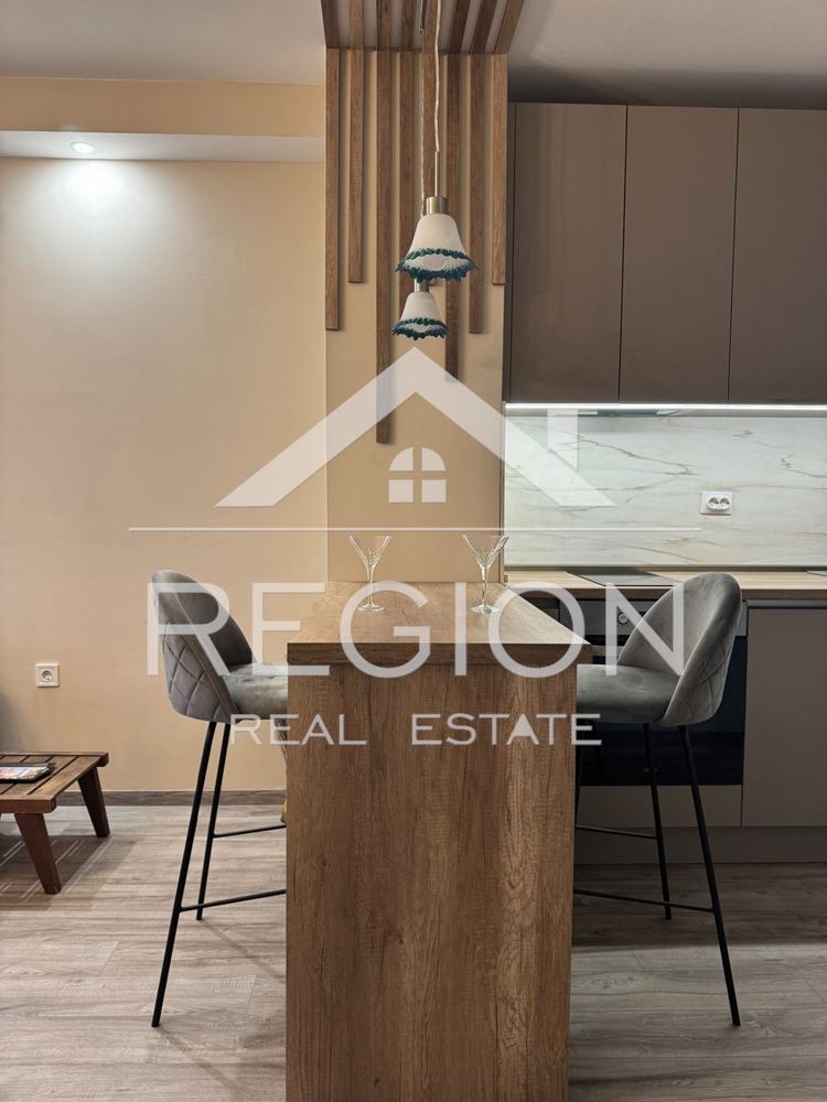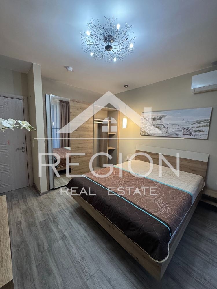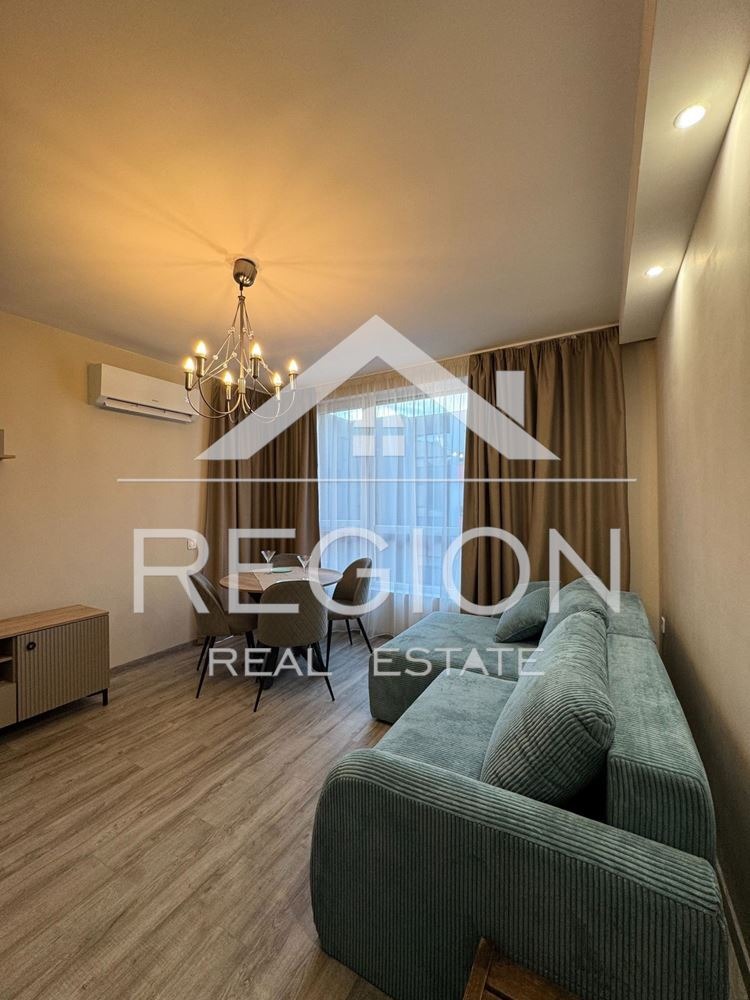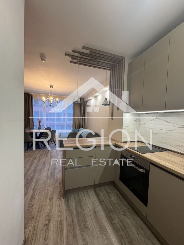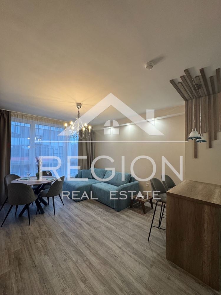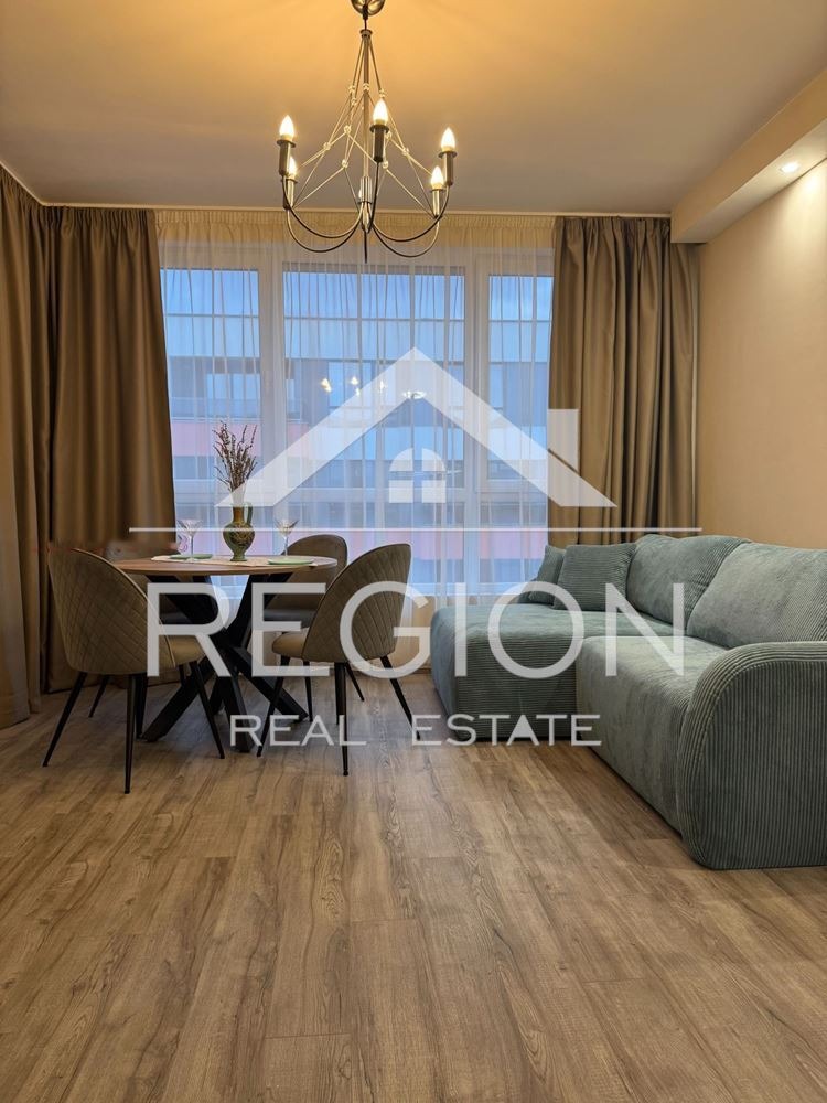 Агенция за недвижими имоти Регион отдава под наем светъл, топъл и модерен двустаен апартамент, разположен на 6-ти етаж в нова сграда, в близост до Делта Планет Мол. Състои се от хол с трапезария и напълно оборудван кухненски бокс, спалня, баня с тоалетна, антре с голям килер и пералня, както и тераса.Жилището е с модерно обзавеждане и практично разпределение, което го прави подходящо както за сам човек, така и за двойка или малко семейство. Намира се на комуникативно място, в близост до детска градина и спирки на градски транспорт.За повече информация или оглед позвънете на посочения телефон.