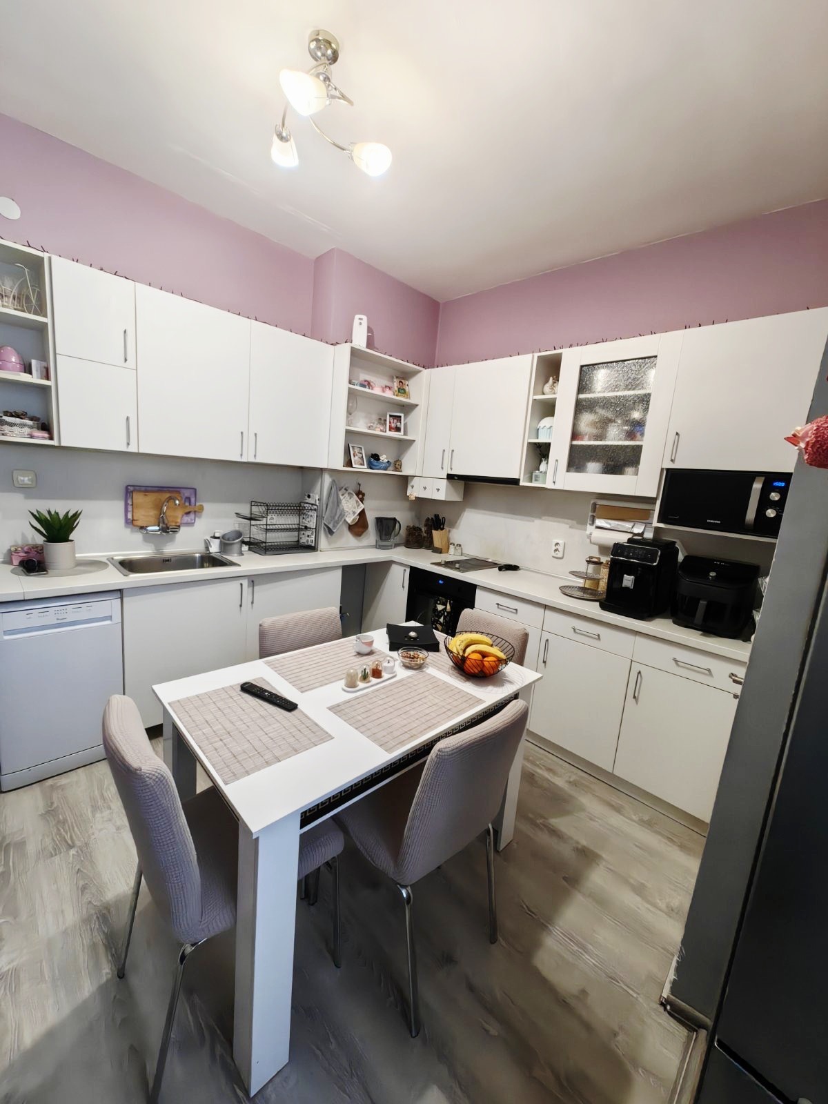 Разпределението е логично и човешко входно антре, просторна дневна, отделна кухня с трапезария, две самостоятелни спални, баня с тоалетна, мокро помещение и голямо мазе, което е реално удобство, не просто детайл. Апартаментът е светъл, с добри изложения и усещане за въздух и простор дом, който не се натрапва, а остава.