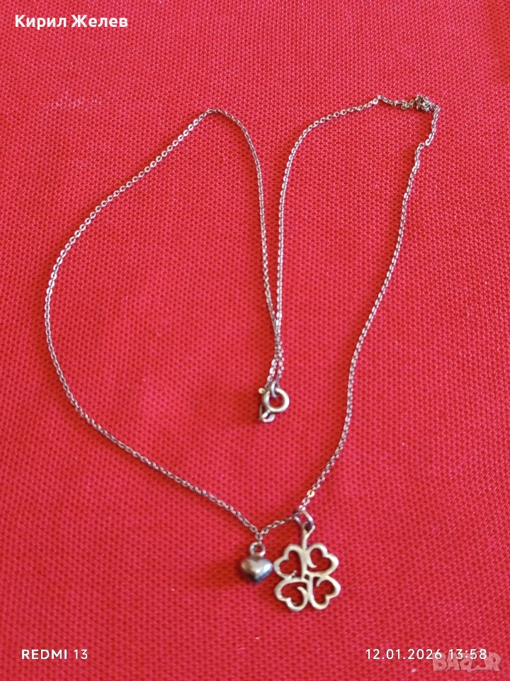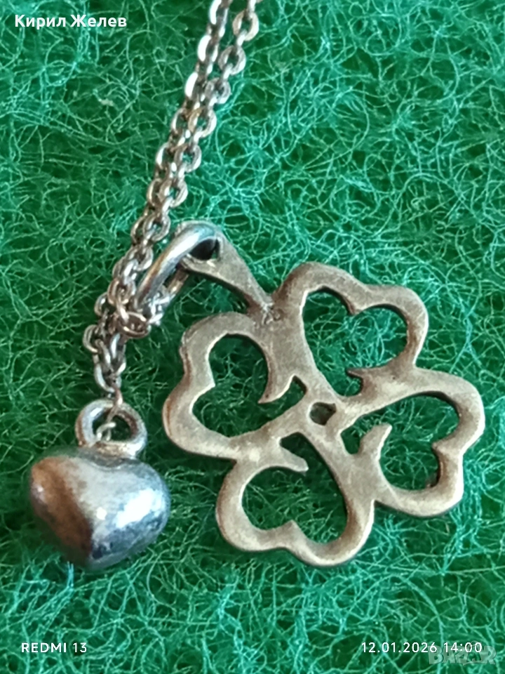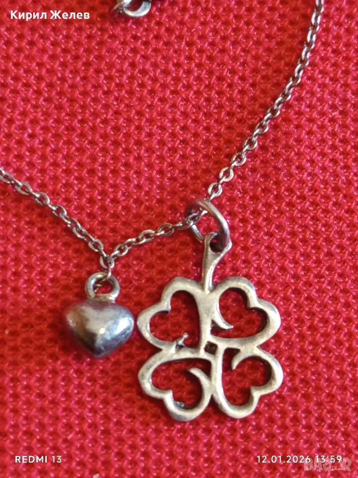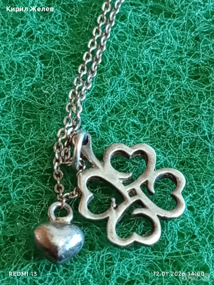 Късметлийско романтично сребърно колие четирилистна Детелина,сърце ❤️ много красив дизайн 52652