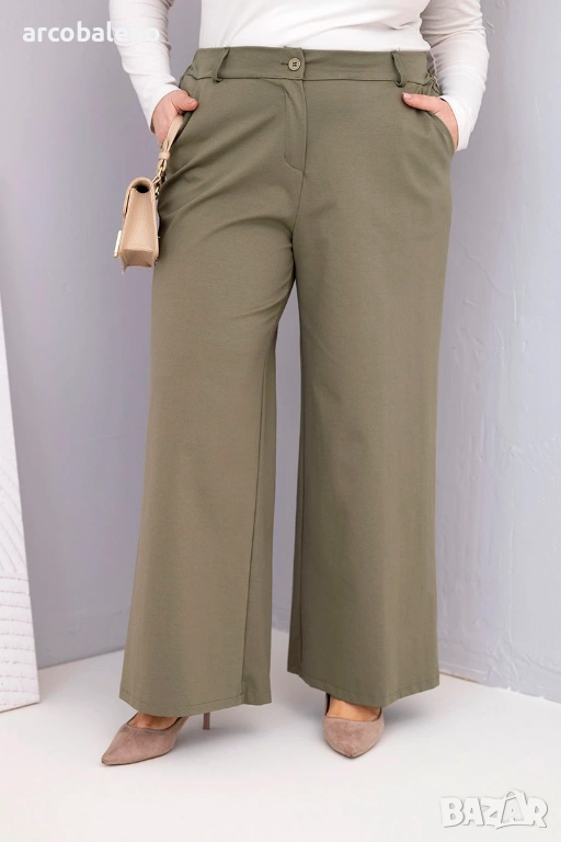 Търсите ли удобни, но стилни панталони за всеки повод? Тези дамски панталони с широки крачоли и висока талия са перфектният избор за жени, които ценят комфорта и модерния външен вид. Свободната кройка позволява свобода на движение, а материалът със еластан се адаптира перфектно към тялото, подчертавайки неговите предимства.