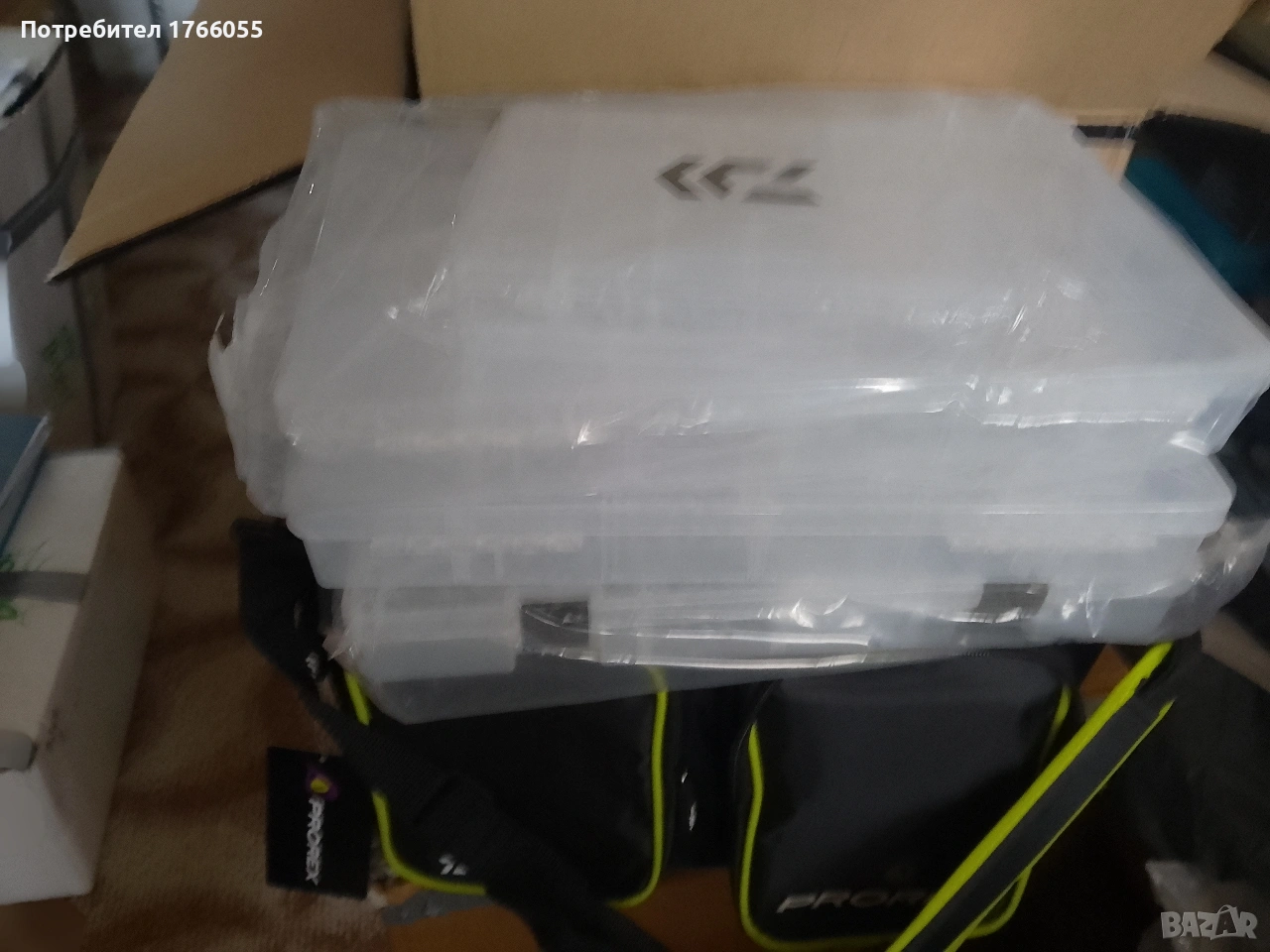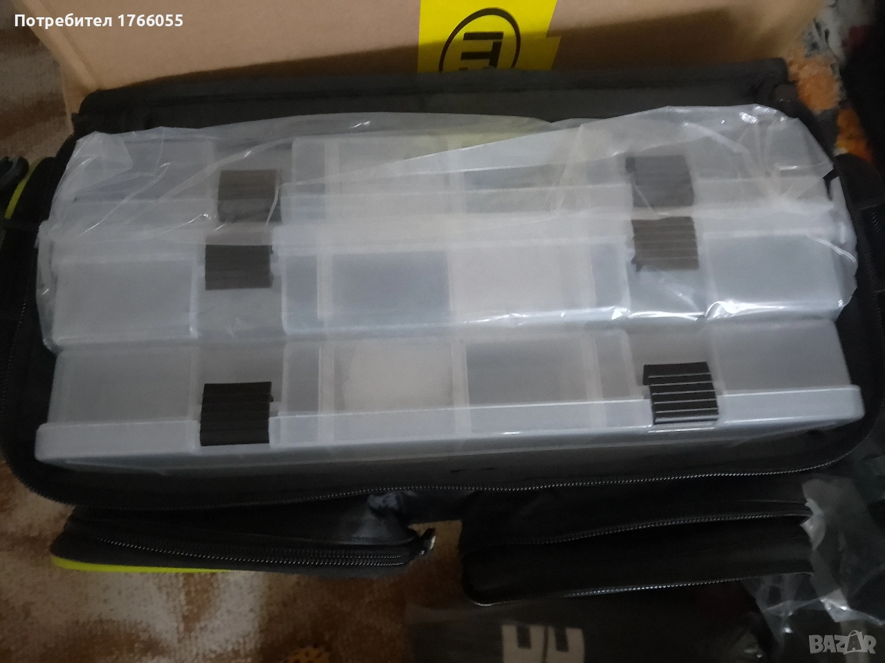 - Включва три големи и една по-малка кутии за риболовни принадлежности