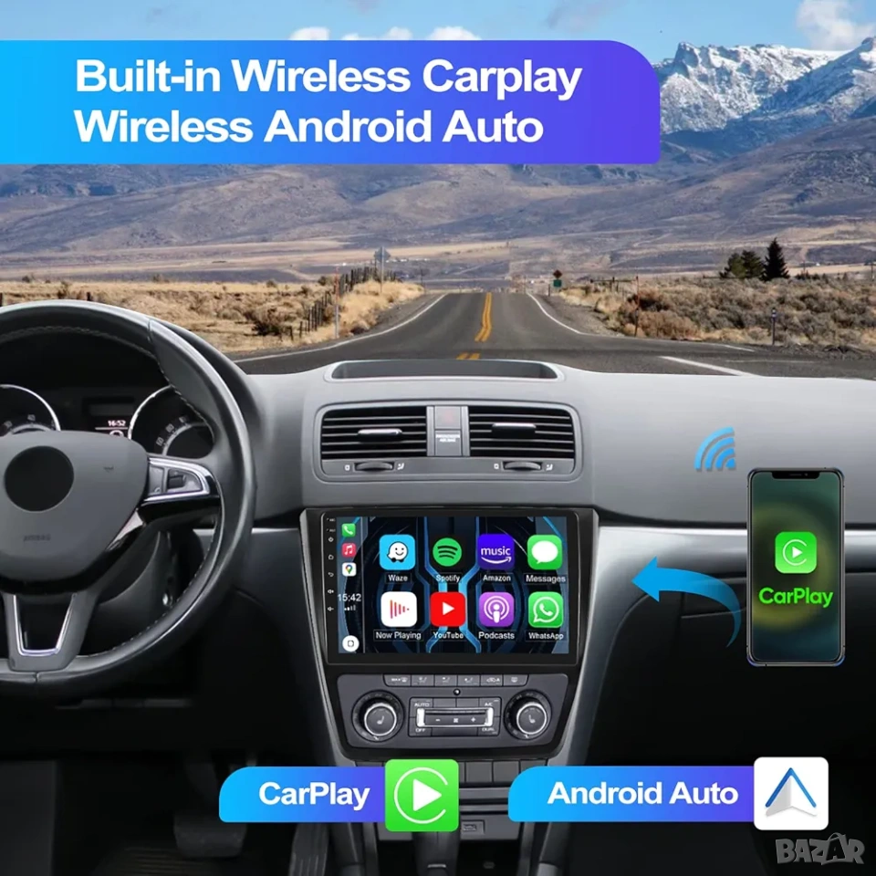 * Wireless CarPlay & Android Auto: Безжична връзка за навигация, разговори и музика директно от вашия телефон.