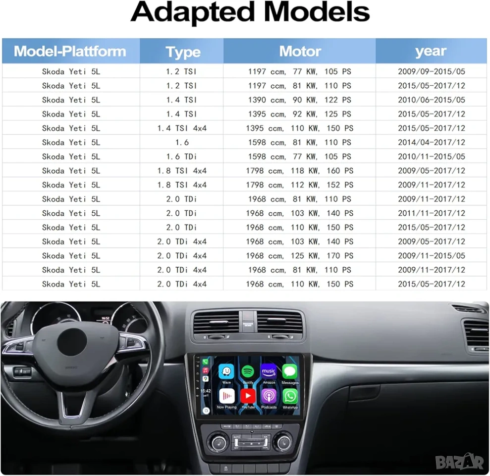 Съвместимост с модели (Skoda Yeti 5L)